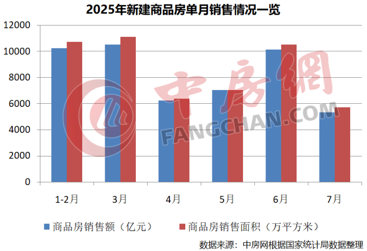 根据国家统计局数据,1-7月份,新建商品房销售面积51560万平方米,同比下降4.0%;其中住宅销售面积下降4.1%。新建商品房销售额49566亿元,下降6.5%;其中住宅销售额下降6.2%。